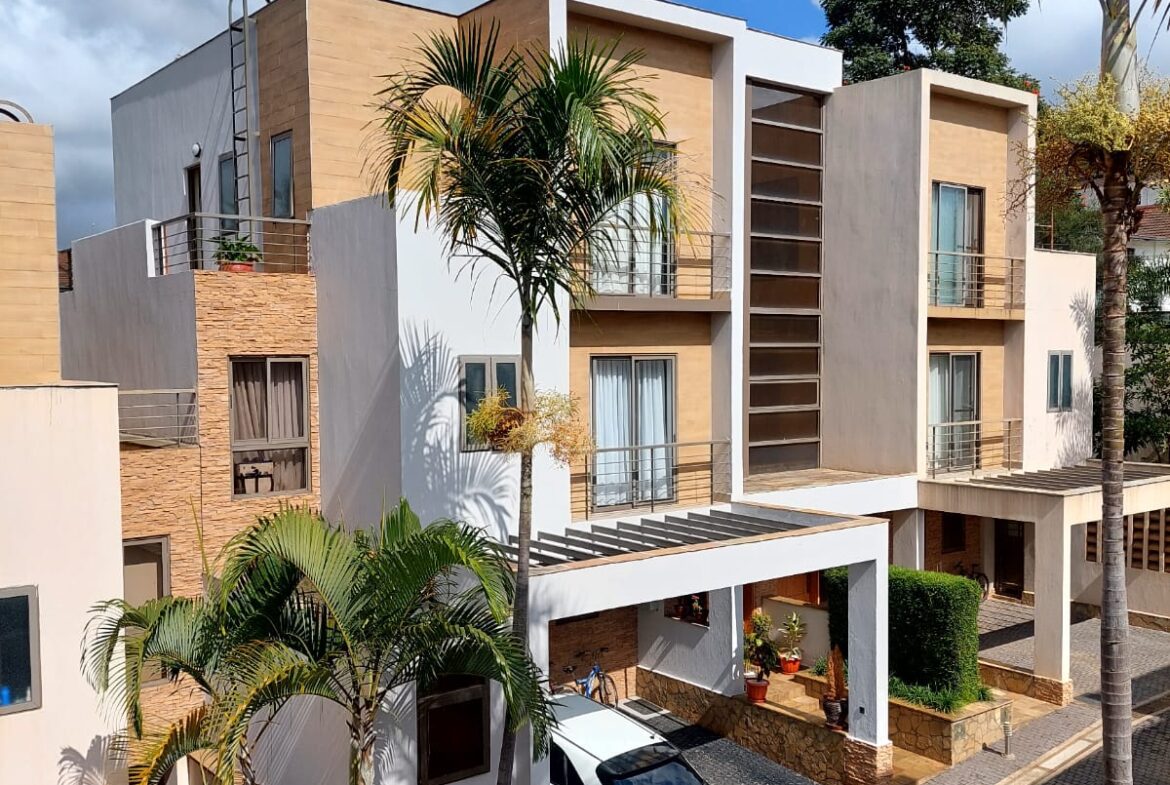 In a gated community of 10 houses is this Beautiful four bedroom townhouse located in Kileleshwa well priced to let.